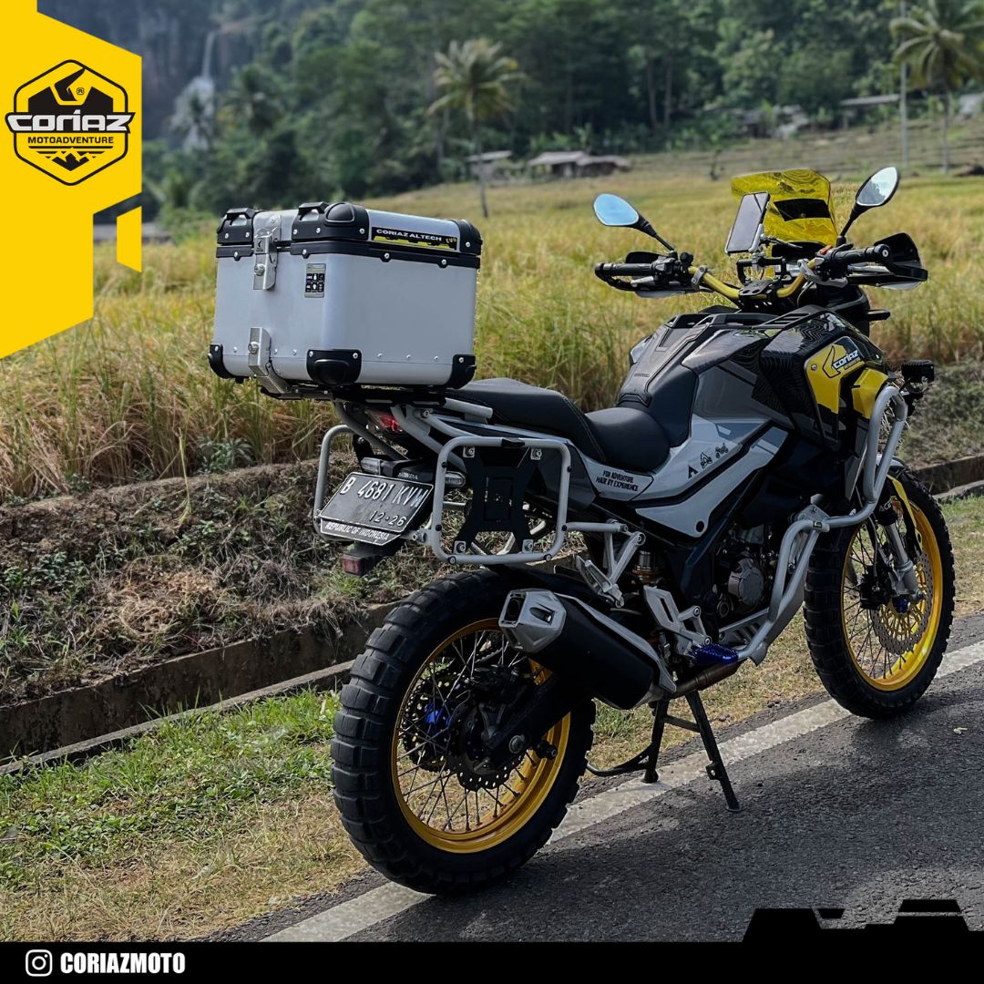 Siderack X-Mode Coriaz Motoadventure hadir khusus untuk memenuhi kebutuhan CB150X dalam hal desain dan fungsi. Dirancang khusus untuk kebutuhan touring maupun adventure jarak jauh, siderack ini menggabungkan kekuatan, ketahanan, dan fungsionalitas dalam satu paket. Dengan konstruksi Coriaz Siderack X-Mode, produk ini siap menopang beban berat sebesar 10KG, sekaligus tetap stabil di berbagai medan.