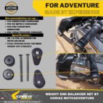 Ini adalah produk CORIAZ Motoadventure dengan Fungsi yang sedikit teknikal yang harus kawan kawan pahami semua Motor adventure atau dualsport biasanya memiliki getaran sedikit berlebih di bagian stang dikarenakan biasanya motor ini 1 Cyl dan berCC besar Fungsi dari Weight end Balancer ini adalah sebagai Pemberat ujung stang khusus bagi kawan kawan yang sudah memakai HANDGUARD!!