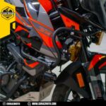 Dibuat dengan steelpipe berkualitas tinggi, plat SPHC standar JIS G 3131 dan setiap sambungan diproses dengan teknik MIG welding sehingga lebih presisi dan kokoh. Finishing powder coating tersedia dalam pilihan warna hitam atau silver, menghadirkan tampilan tangguh sekaligus elegan. Crashbar ini Dibuat dengan Pipa Tankguard lebih besar namun tetap ringan dan lebih baik dari Versi Sebelumnya. Didesain untuk memberikan perlindungan maksimal pada motormu.