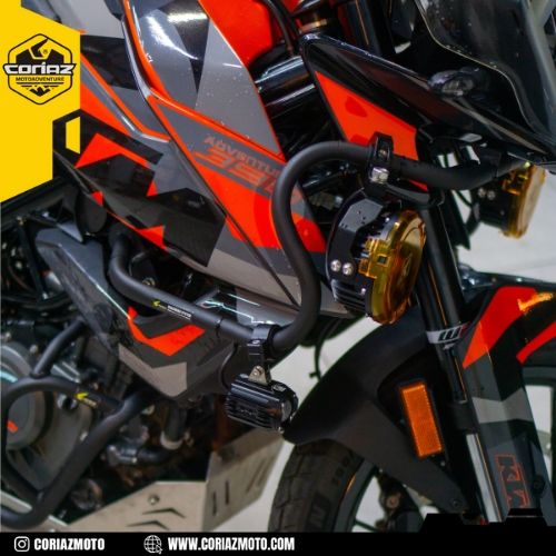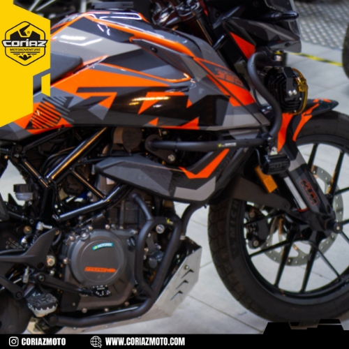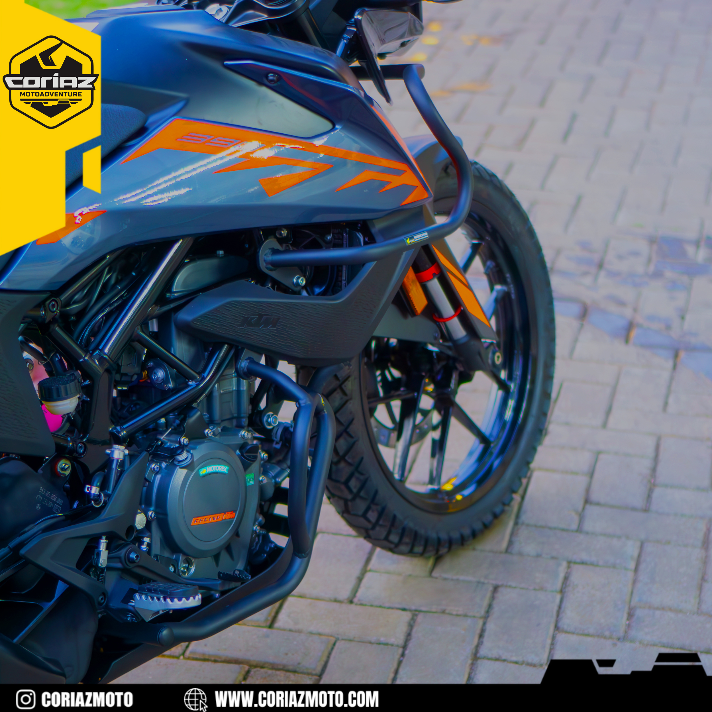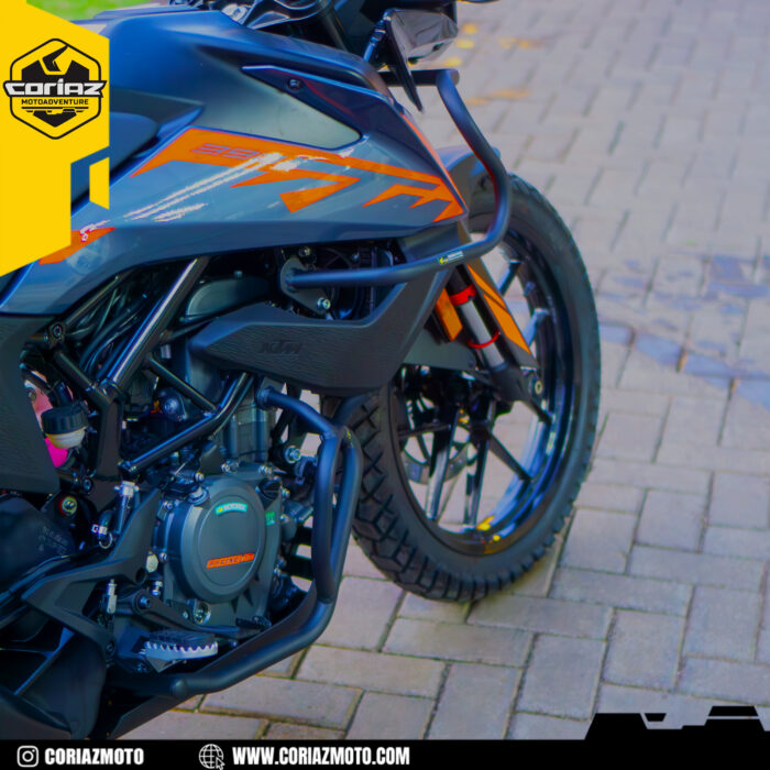 Setiap petualangan butuh perlindungan extra yang dapat diandalkan. Crashbar Coriaz Motoadventure hadir untuk KTM 250/390 Adventure sebagai jawaban untuk para petualang yang ingin tampil tangguh sekaligus elegan. Dengan pipa Tankguard berdiameter 25,4mm namun tetap ringan, part ini membawa perlindungan untuk bodi motor dan penyempurnaan desain dari versi KTM 250/390 Adventure sebelumnya. Lalu penggunaan steel pipe berdiamater 22 mm dengan ketebalan 1,7 mm pada engine guard motor KTM 250/390 Adventure anda yang berfungsi untuk melindungi vital mesin dari segala benturan benda keras atau terjatuh saat perjalanan jauh dan beradventure.