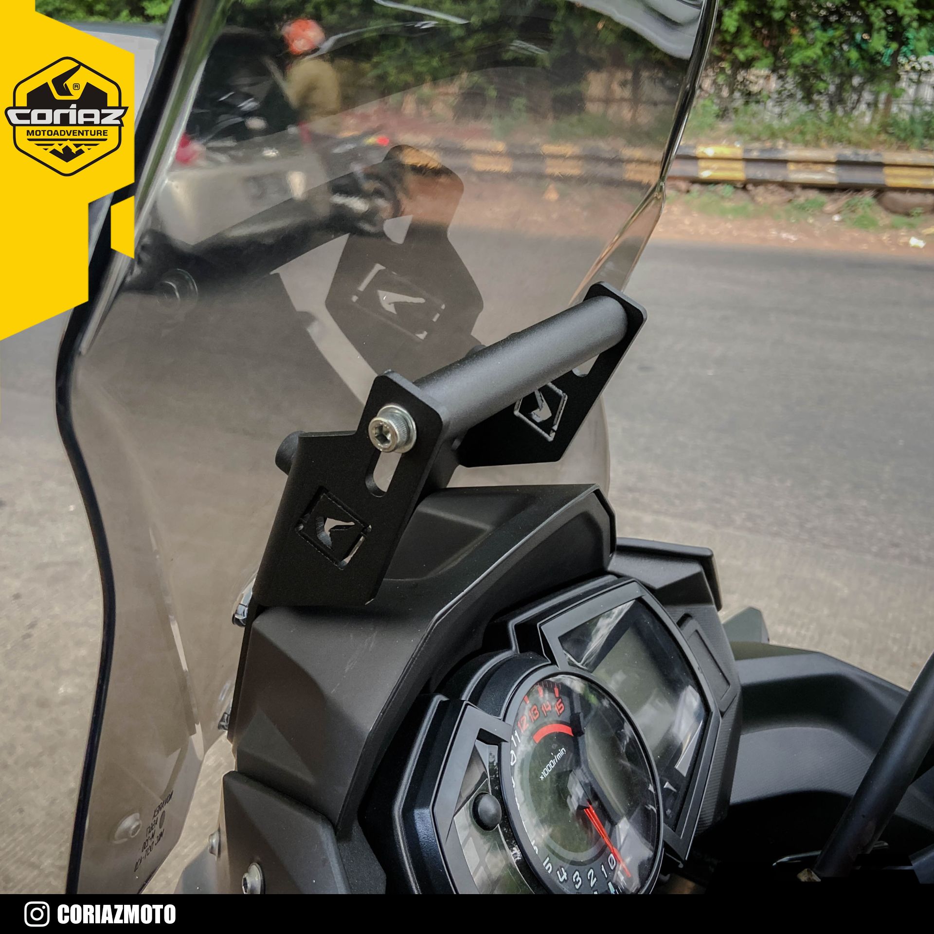 Bracket bar multifungsi ini dapat digunakan untuk meletakkan berbagai macam terutamanya adalah phone holder, x mounting, gps garmin dan GPS lainnya. Kelebihan dari GPS bar multifungsi ini adalah sangat kuat, presisi, anti patah (jika patah diganti baru selama pakai), cat powdercoat terbaik dari Jotun. Terdapat karet kecil yang tebal membuat antara bracket ini dan windshield tidak akan bergesekan juga akan membuat windshield Kawasaki Versys anda lebih diam dan tidak bergoyang ketika ada getaran maupun angin.