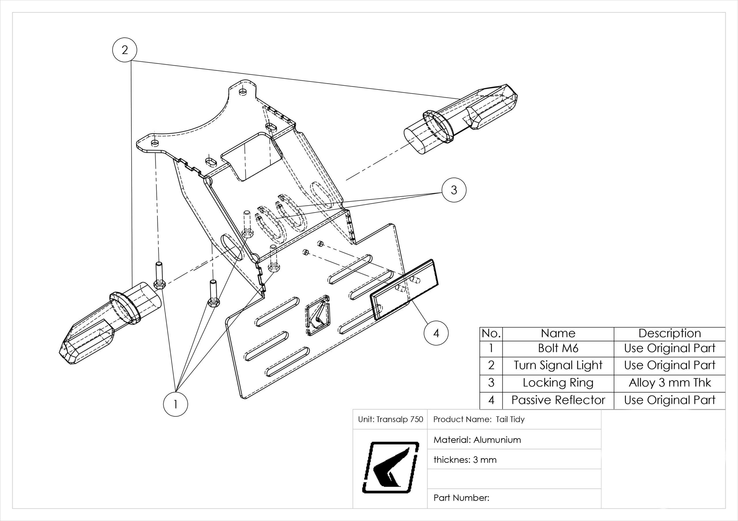 Melalui rancangan yang presisi, produk ini dikembangkan sebagai penambah look adventure tanpa mengurangi fungsinya dimana lampu belakang dan lampu sign original Transalp XL750 tetap dapat digunakan. Pemasangan ini dapat dilakukan secara plug and play.