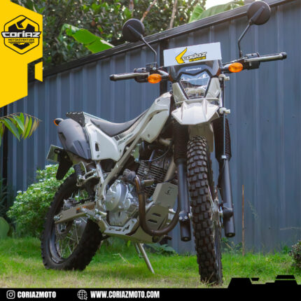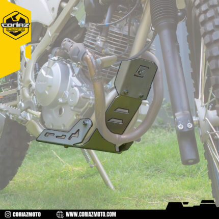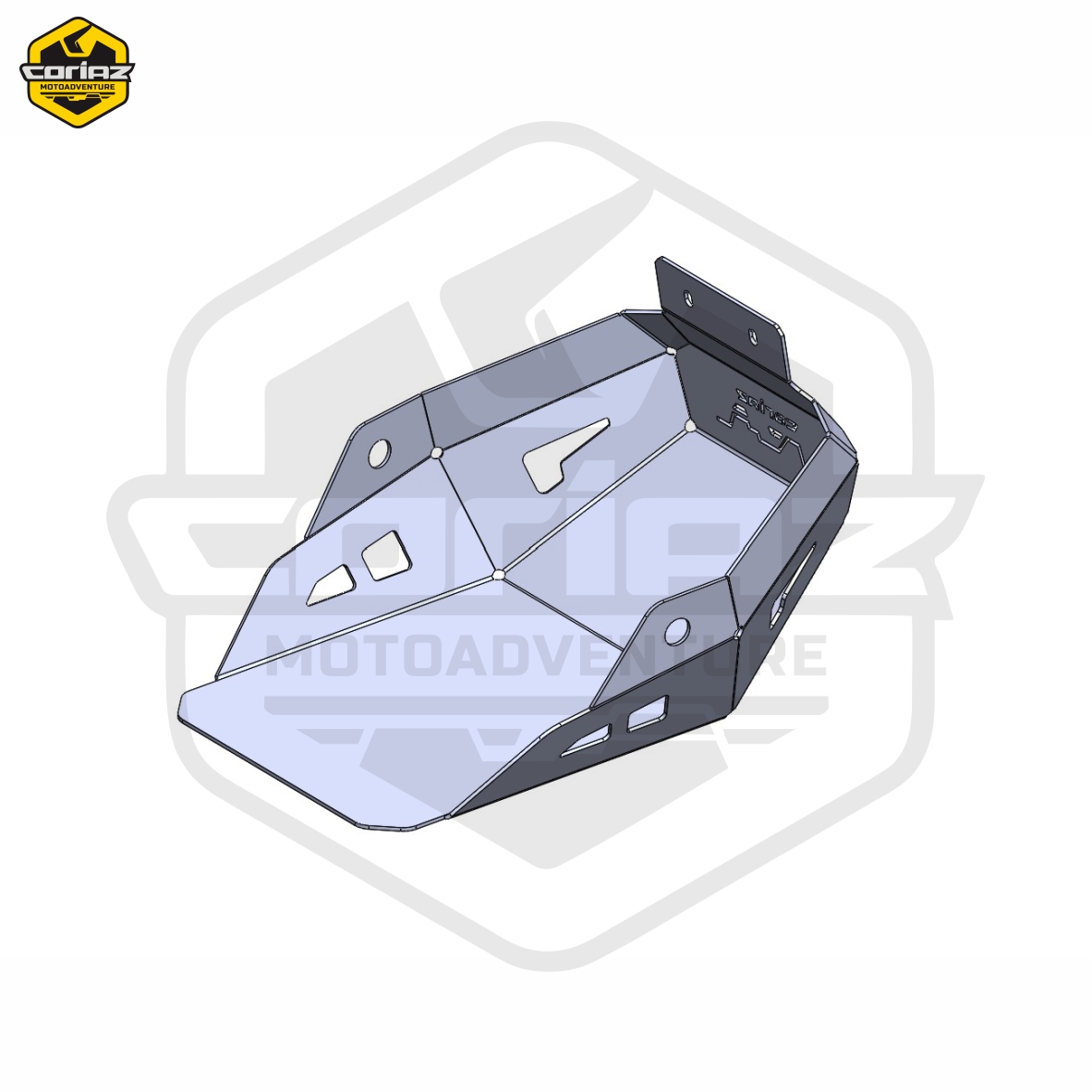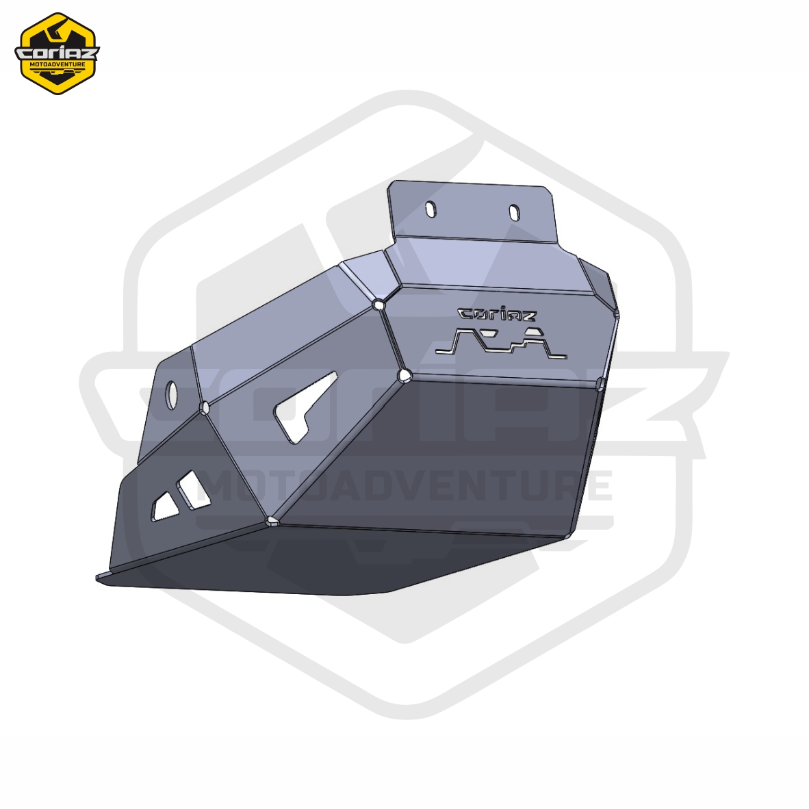 Skidplate Coriaz untuk KLE 500 hadir sebagai upgrade yang sesungguhnya. Dibuat dari aluminium T5 setebal 4mm, dua kali lebih tebal dari skidplate original KLE 500 sehingga perlindungan yang diberikan jauh lebih solid dan meyakinkan. Yang lebih istimewa, desainnya mengcover hingga ke sisi kiri dan kanan mesin, bukan hanya bagian bawah saja. Artinya, ketika motor terjatuh ke samping sekalipun, mesin tetap terlindungi dari benturan langsung ke tanah atau aspal.