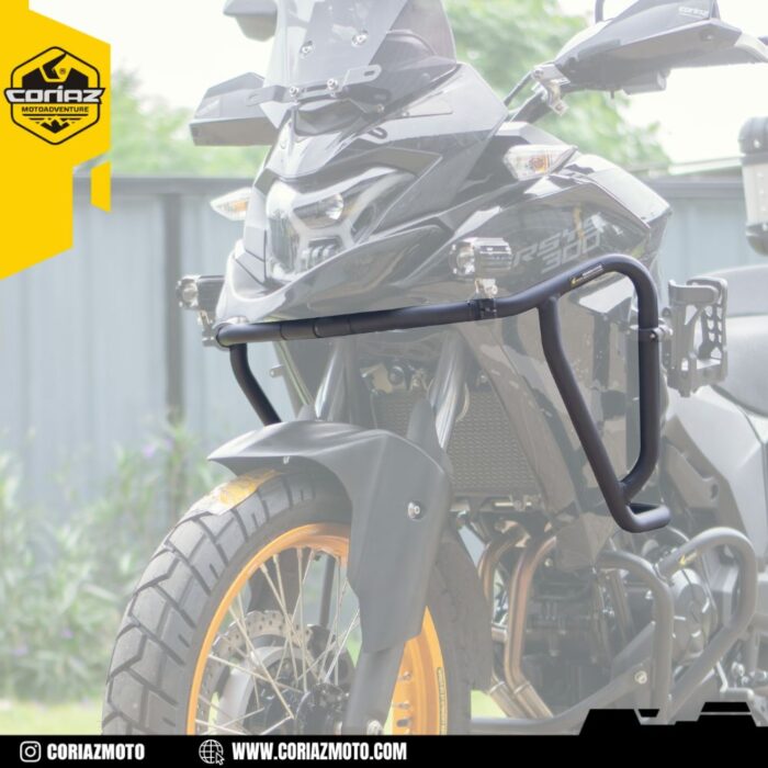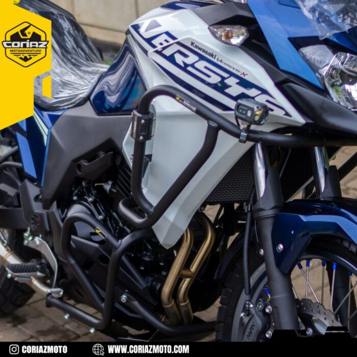 Tank Guard Versys X-250/X300 hadir sebagai solusi perlindungan paling tangguh yang pernah dirancang Coriaz Motoadventure. Menggunakan pipa berdiameter 25,4mm dengan ketebalan 2mm, engine guard ini memberikan lapisan perlindungan ekstra tanpa menambah bobot berlebihan, menjaga kelincahan sekaligus daya tahan motor di segala medan.