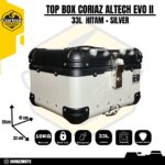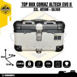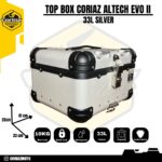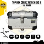 Curah hujan yang tinggi di Indonesia mengharuskan box ini memiliki kemampuan waterproof yang baik, maka Coriaz adalah box yang memiliki kemampuan tahan air yang baik ketika curah hujan extreme, tapi bukan buat direndam secara keseluruhan. Terdapat 3 pilihan warna yaitu Hitam, Silver dan Hitam + Silver dengan ukuran 33 Liter. Pilih sesuai keinginan anda!
