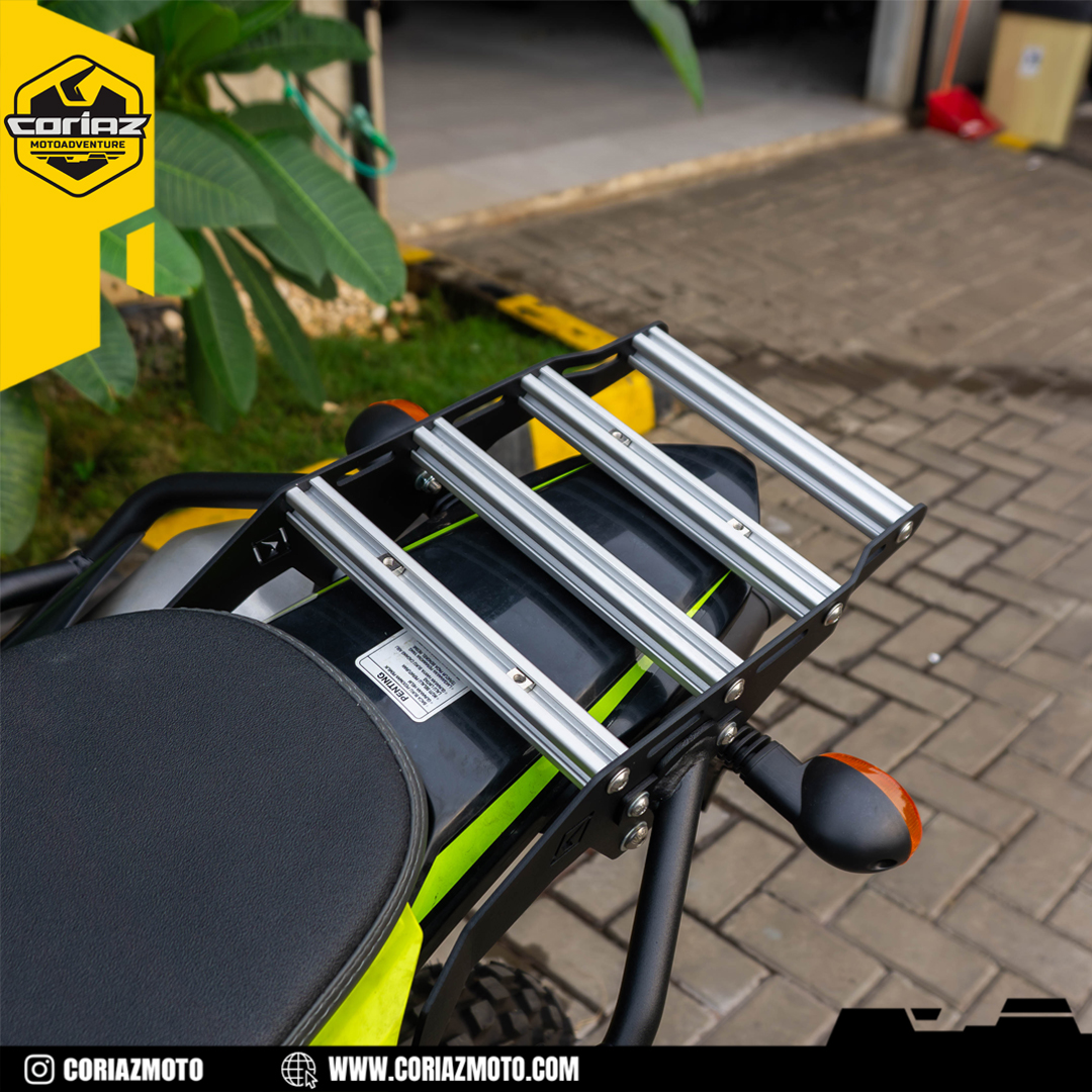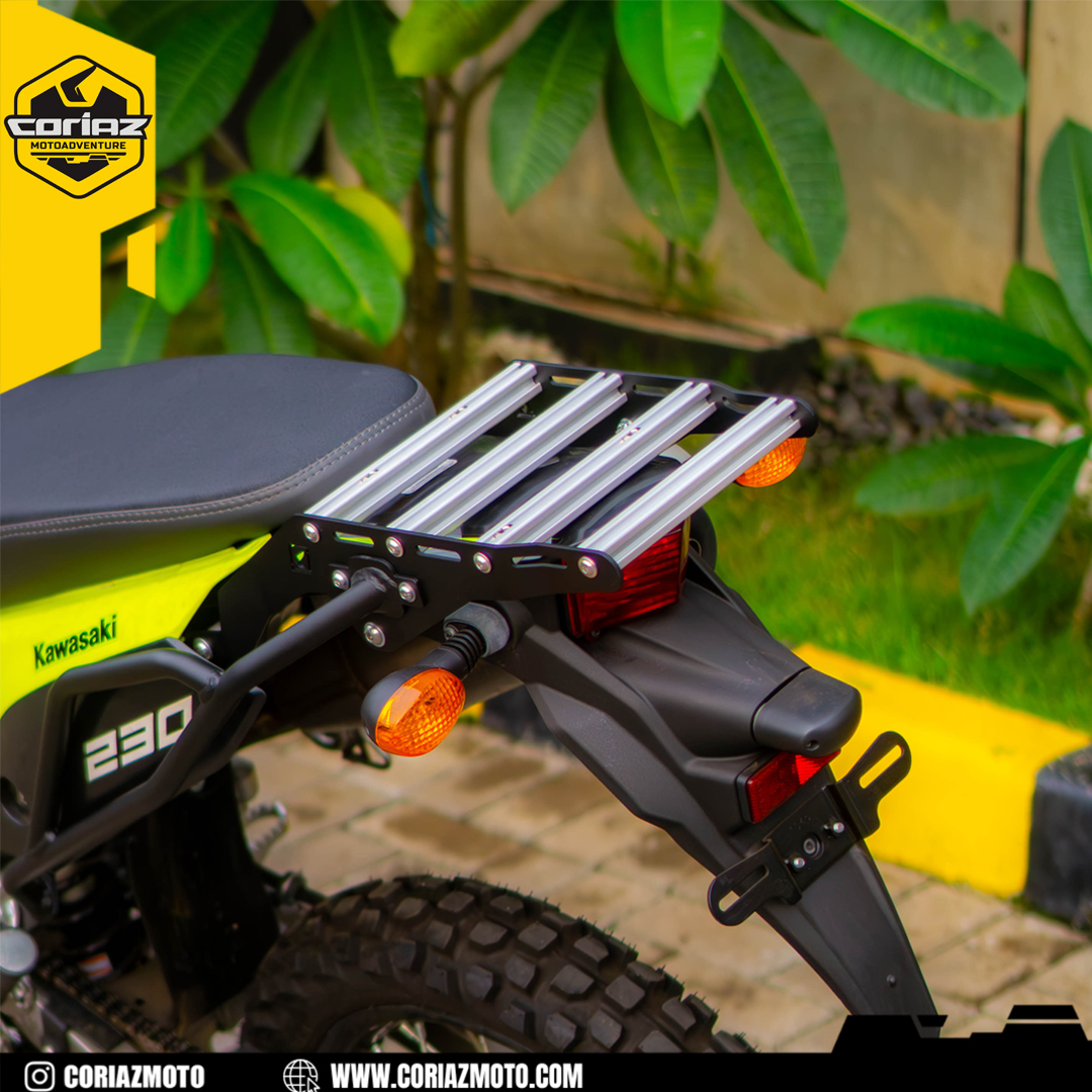 Coriaz Motoadventure menghadirkan paket dengan kombinasi sempurna antara kekuatan, keandalan, dan fungsionalitas. Top Rack Platform KLX 230 SE ini dirancang khusus untuk memenuhi kebutuhan pecinta touring maupun penggunaan harian. Dibuat dari material berkualitas tinggi yang kokoh dan tahan lama, Top Rack ini mampu menopang berbagai jenis barang bawaan mulai dari duffle bag, tas atau sekedar barang bawaan dengan bagasi tambahan kurang lebih hingga 10 kg.